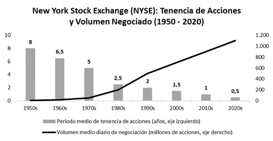 En las últimas décadas, el mundo de la inversión ha vivido una transformación radical. No hace tanto tiempo, invertir era un proceso pausado, tangible y profundamente presencial. Hoy todo eso parece de otra era. Cualquiera puede abrir una cuenta desde el móvil, en cinco minutos, y comprar acciones mientras espera el autobús. Y sí, eso ha democratizado el acceso a los mercados como nunca antes, pero también nos ha cambiado a nosotros, aunque no siempre para mejor. En los años 50, un inversor medio aguantaba sus acciones más de ocho años; en 2020, apenas seis meses. Al mismo tiempo, el volumen diario de negociación ha pasado de unos pocos millones a más de mil millones. Hemos cambiado compromiso por inmediatez.